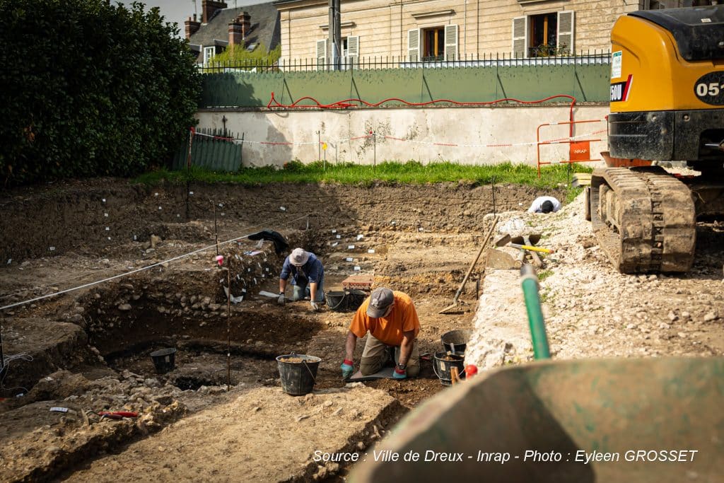 Dans le cadre d’un partenariat entre l’Inrap et le musée d’Art et d’Histoire de Dreux, 170 écoliers et collégiens ont visité le chantier de fouilles début mars. L’occasion pour eux de découvrir concrètement le fonctionnement d’une opération archéologique et d’appréhender les différentes étapes du travail mené par les chercheurs. Cette visite pédagogique a également contribué à replacer l’histoire de la ville dans une temporalité plus large, en mettant en lumière les traces de son passé. Pour des raisons pratiques, il n’était pas possible d’accueillir le grand public sur ce terrain privé. Cependant, l’Inrap envisage d’organiser une conférence lors des Journées européennes du patrimoine, les 19 et 20 septembre prochains, pour présenter aux Drouais le fruit de leurs recherches et ce qu’elles révèlent sur l’évolution du territoire.